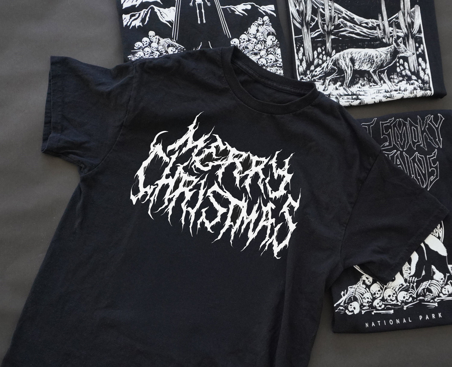 Shop our metal-inspired 'Merry Christmas' tee to get ready for the holidays.