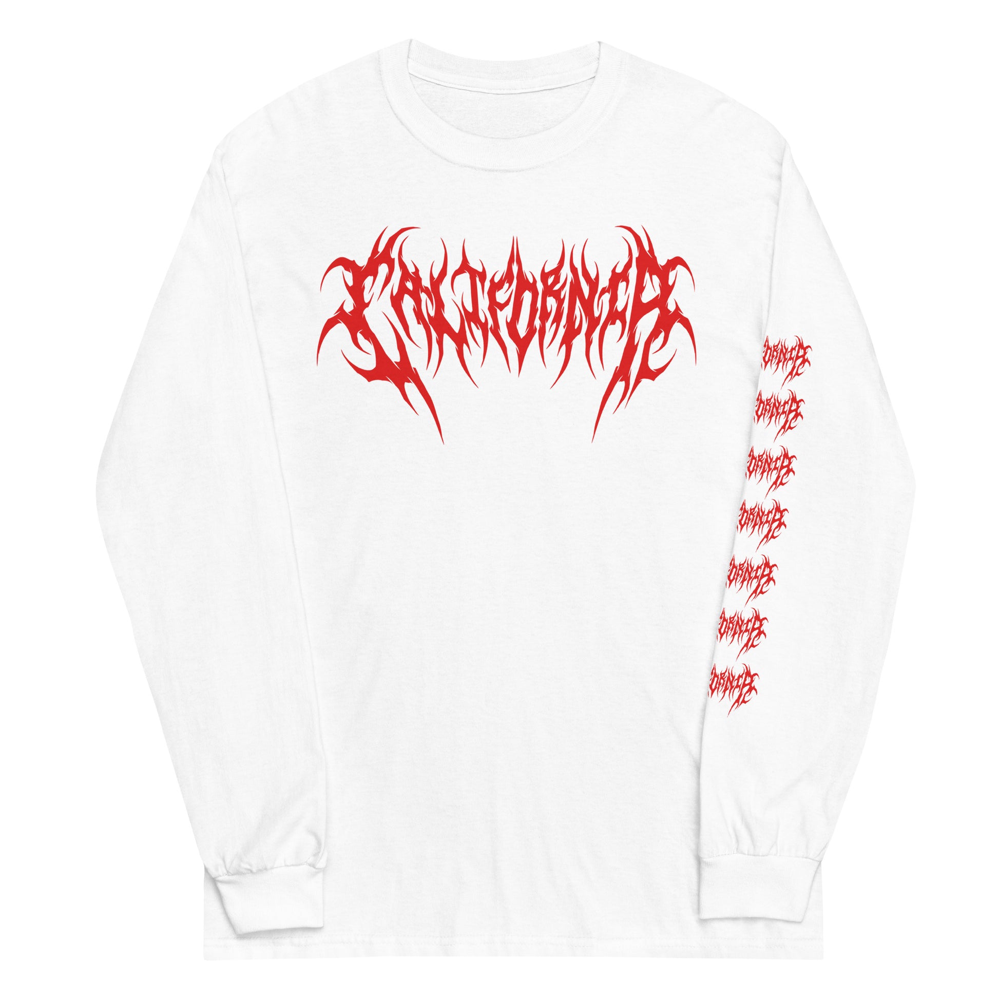 Featuring 'California' in bold red death metal-inspired lettering, this shirt is perfect for those who love the West Coast.
