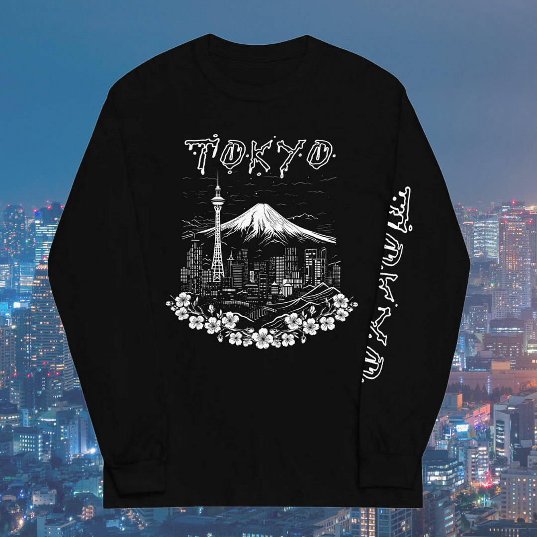 Known for historic shrines and temples, a modern city skyline, cherry blossoms, and anime, Tokyo is the largest city in the world and Japan's capital city. This death metal inspired tee features Mount Fuji and the beautiful sakura flowers.
