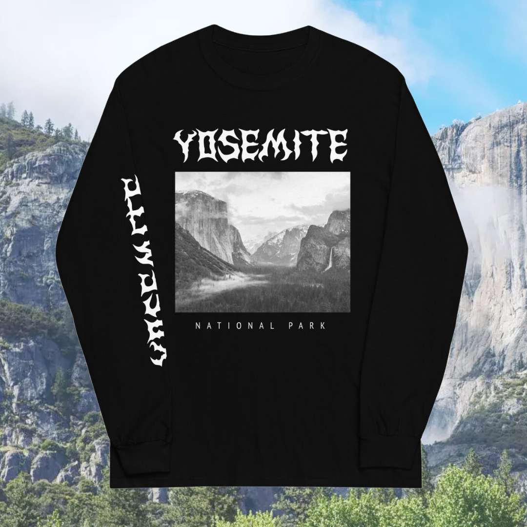 Yosemite National Park Death Metal Style Black Long Sleeve T-Shirt
